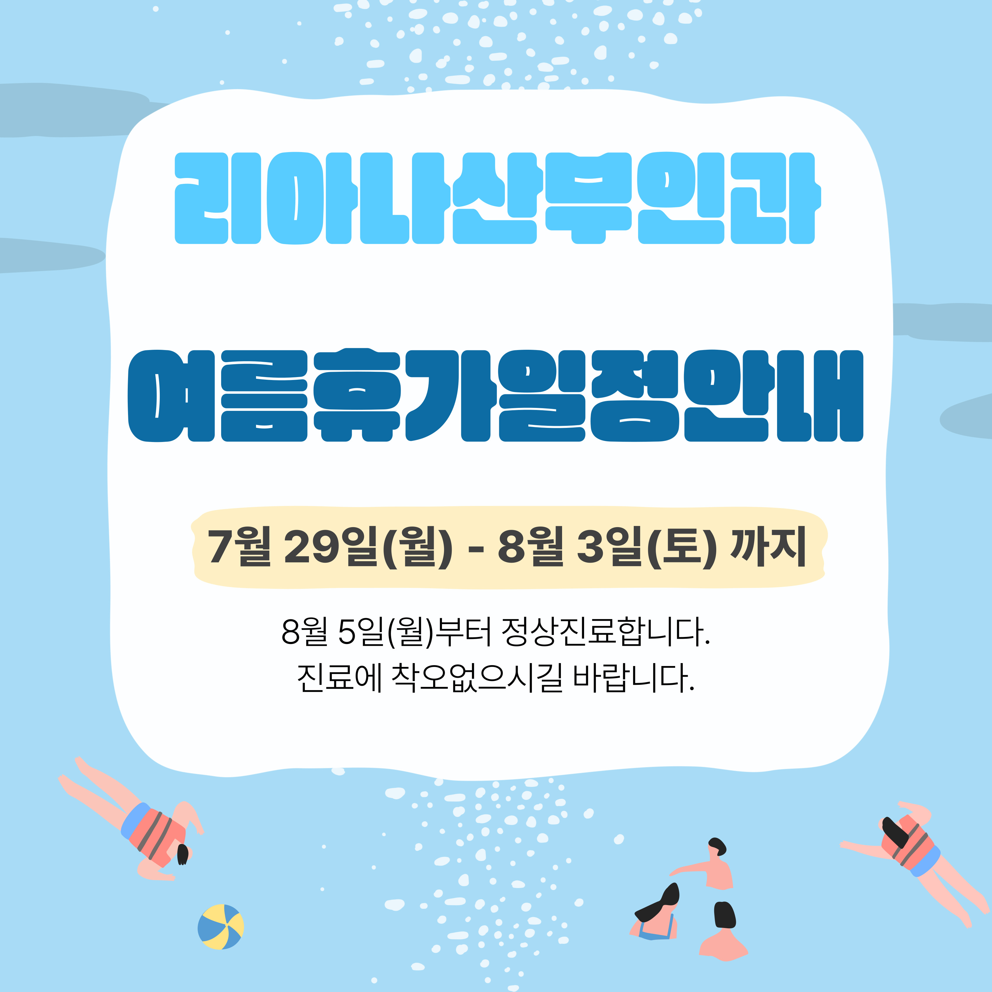| 리아나산부인과 여름휴가안내 |