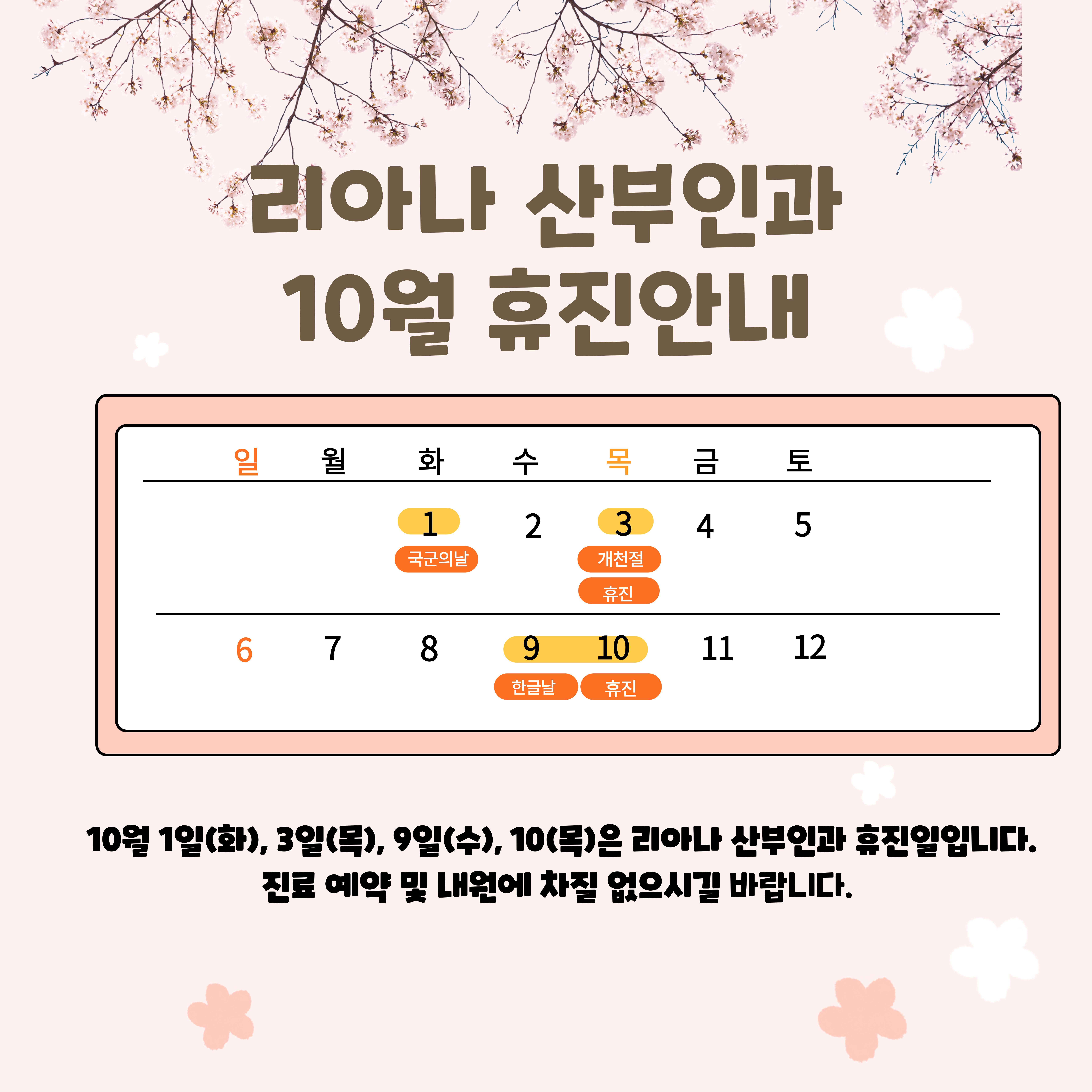 | 리아나산부인과 10월 휴진 안내 |