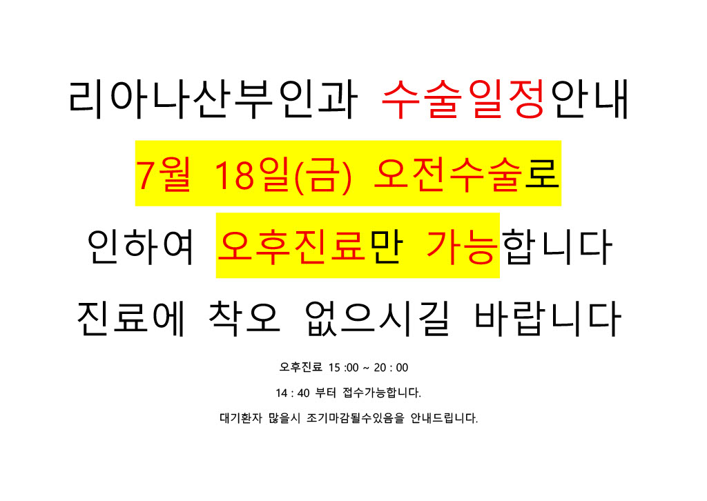 | 리아나산부인과 7월 수술일정안내 |